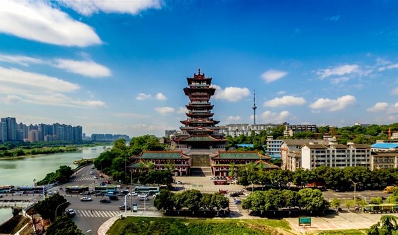 越王楼始建于唐高宗显庆年间(公元656-661年),与滕王阁、黄鹤楼、岳阳楼并称唐代四大名楼,李白、杜甫、李商隐、陆游、李调元等历代名人雅士都曾留下题咏越王楼的著名诗篇,被誉为“天下诗文第一楼”。