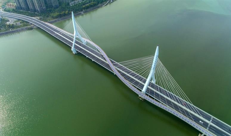 城南新区一号桥建成通车,有效地优化和改善了绵阳南区的交通结构,极大地缓解了中心城区的交通压力,从城东游仙区到城南新区不再绕行主城区,城东到城南将缩短5公里左右的路程。大桥在人行层飞架桥面上方,形成并不规则的“S”形,为全漂浮体系,建设技术居世界领先地位。