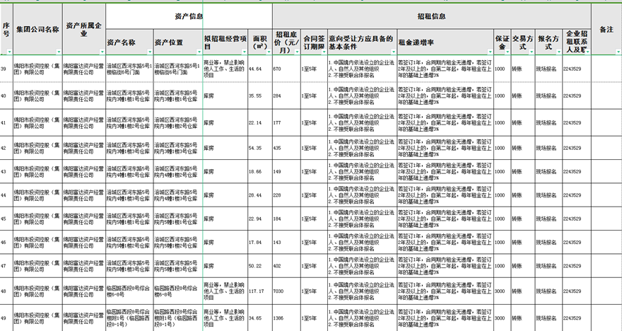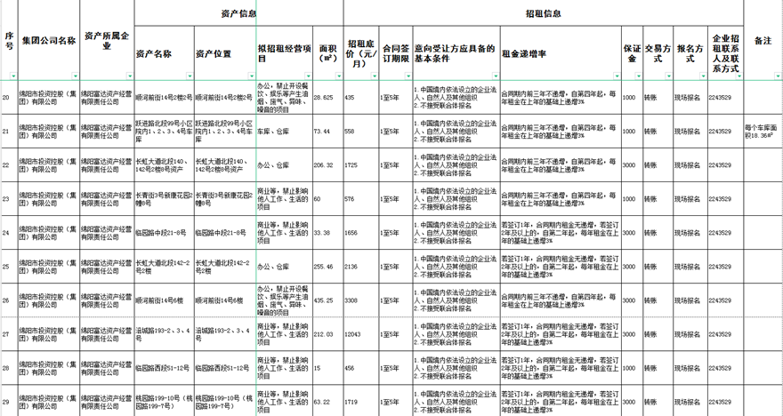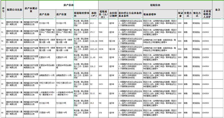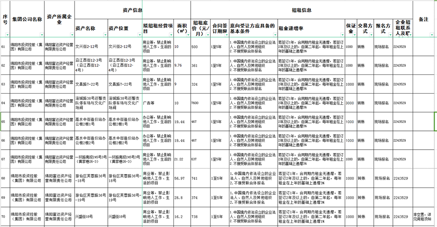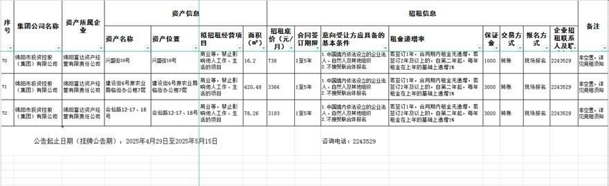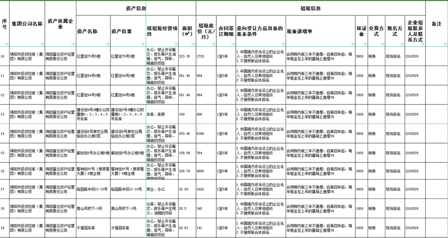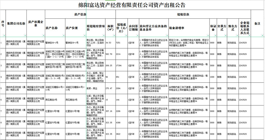 绵阳富达资产经营有限责任公司资产出租公告
