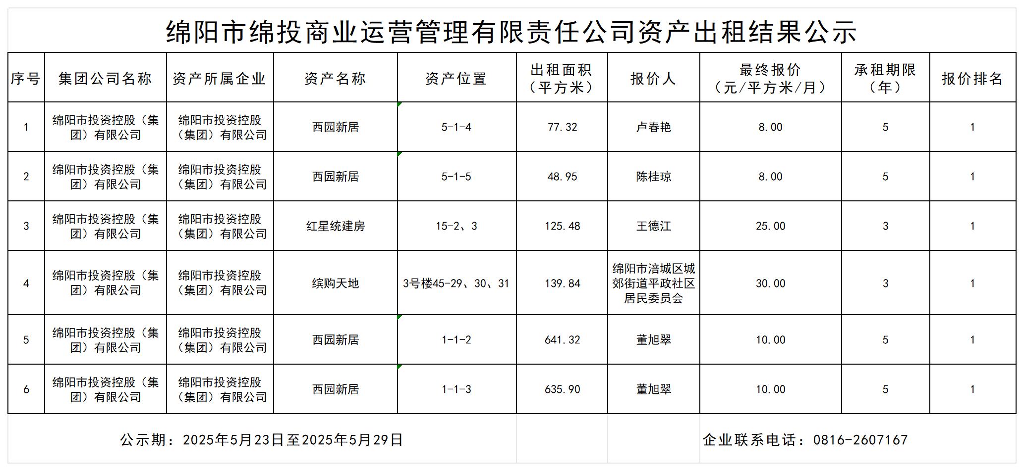 绵阳市williamhill官网商业运营管理有限责任公司资产出租结果公示