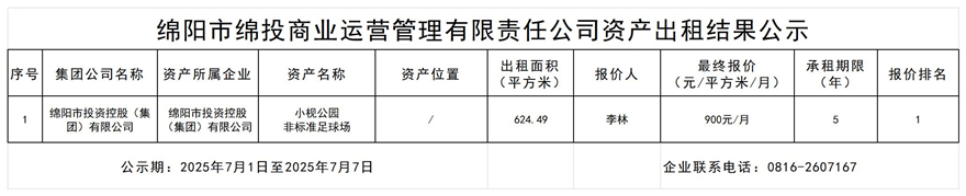 绵阳市williamhill官网商业运营管理有限责任公司资产出租结果公示