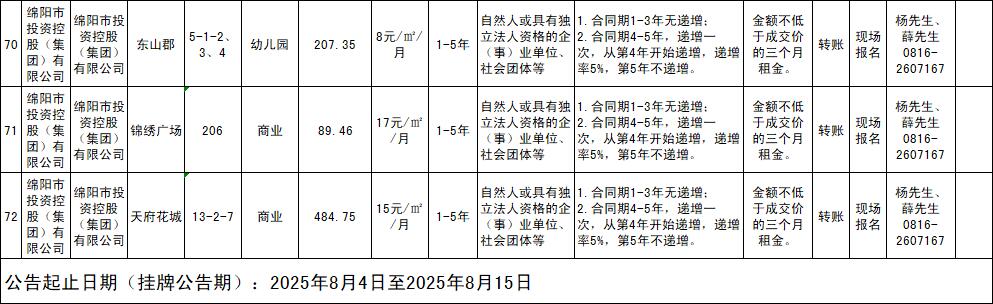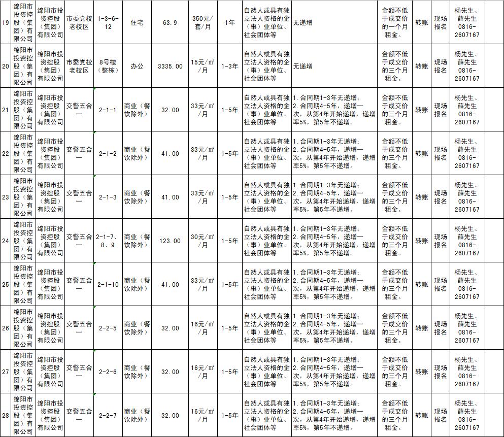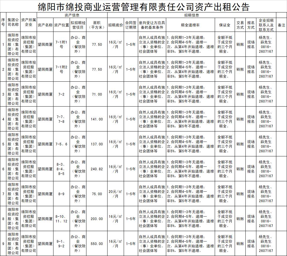 绵阳市williamhill官网商业运营管理有限责任公司资产出租公告