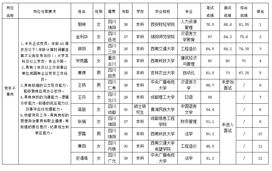 根据williamhill官网发布的招聘公告及招聘相关规定,经笔试、面试等程序,现将笔试(面试)成绩予以公示。