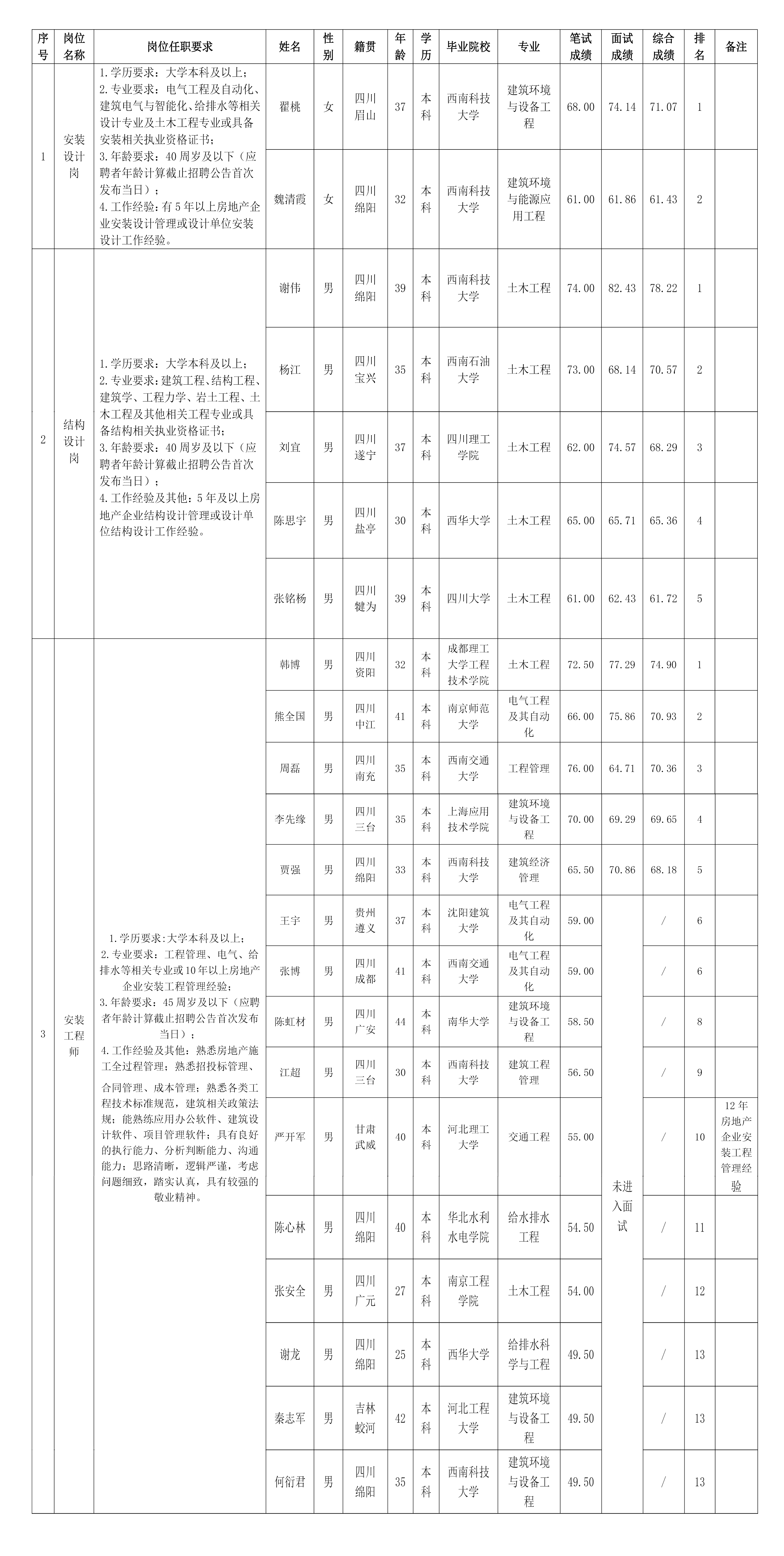 根据绵阳市williamhill官网置地有限公司发布的招聘公告及招聘相关规定,经笔试、面试等程序,现将笔试、面试成绩予以公示。