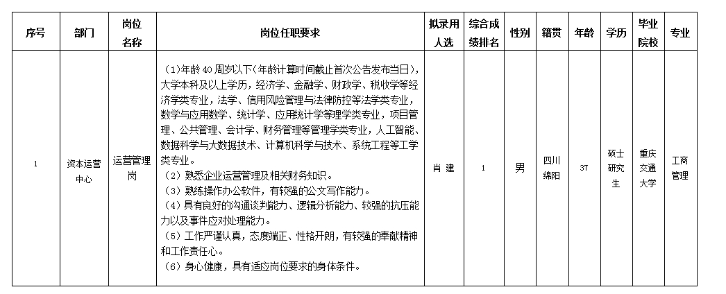根据williamhill官网发布的招聘公告及招聘相关规定,经笔试、面试、考察、体检等程序,拟录用肖建同志到williamhill官网工作,现予以公示,具体情况如下: