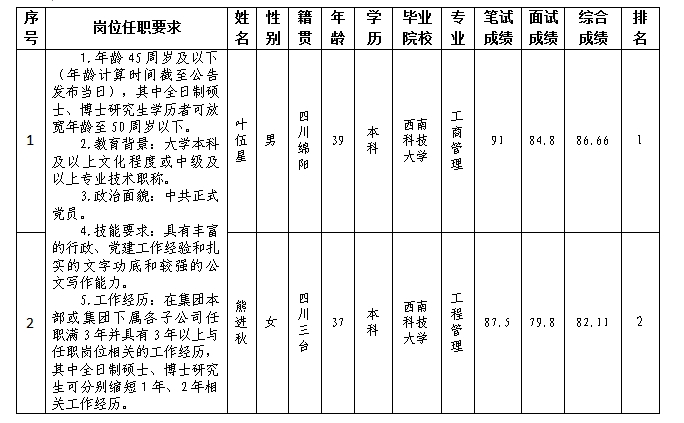 根据绵阳市城市停车管理有限公司发布的竞聘公告及竞聘相关规定,经笔试、面试等程序,现将笔试(面试)成绩予以公示。