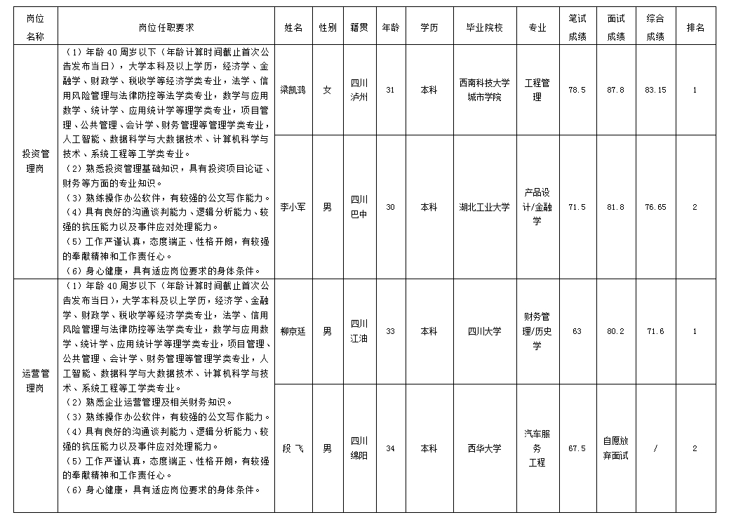 根据williamhill官网发布的招聘公告及招聘相关规定,经笔试、面试等程序,现将笔试(面试)成绩予以公示。