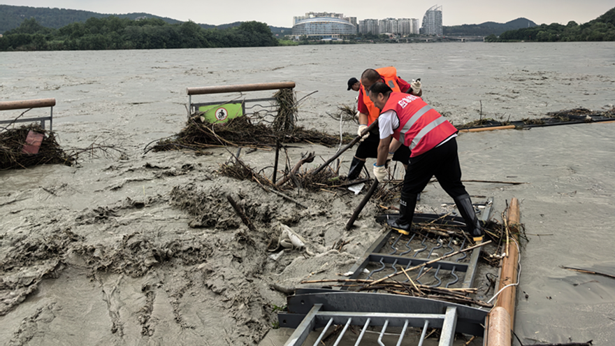 连日暴雨,上游洪峰裹挟漂浮物汹涌而下。危急时刻,绵阳三江半岛景观廊桥的围栏在短短30分钟内被快速放倒,为洪水开辟通道。近日,这一高效处置场景获央省媒体聚焦报道。背后,是越王楼公司作为国企,七年如一日守护城市安全的用心与智慧。