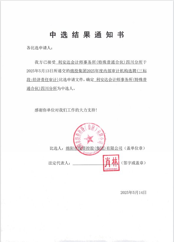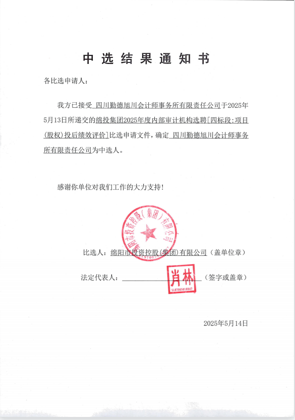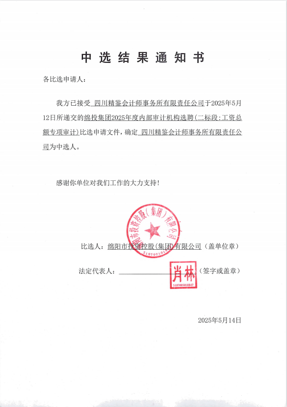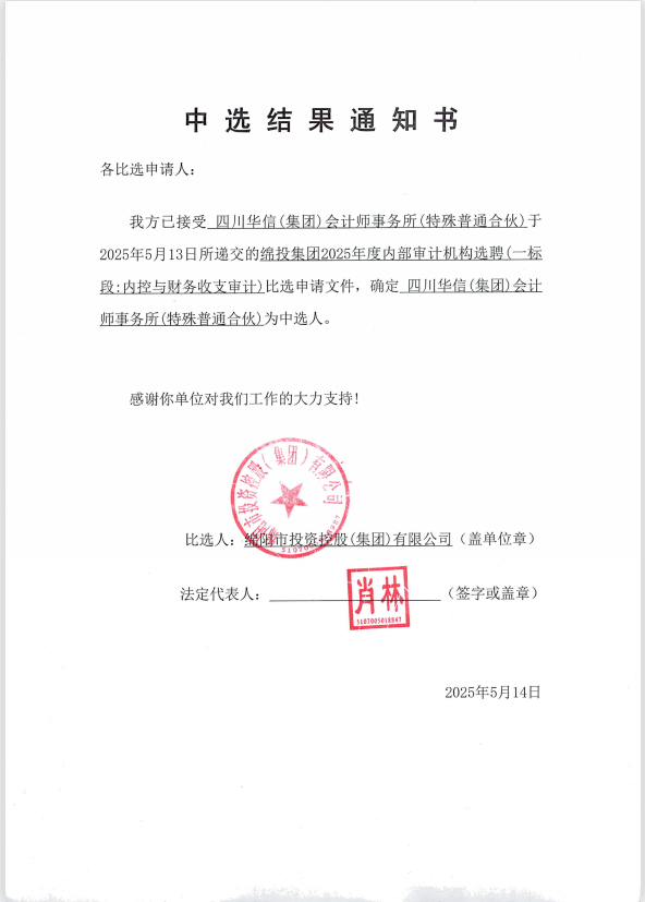 williamhill官网集团2025年度内部审计机构选聘中选结果通知书