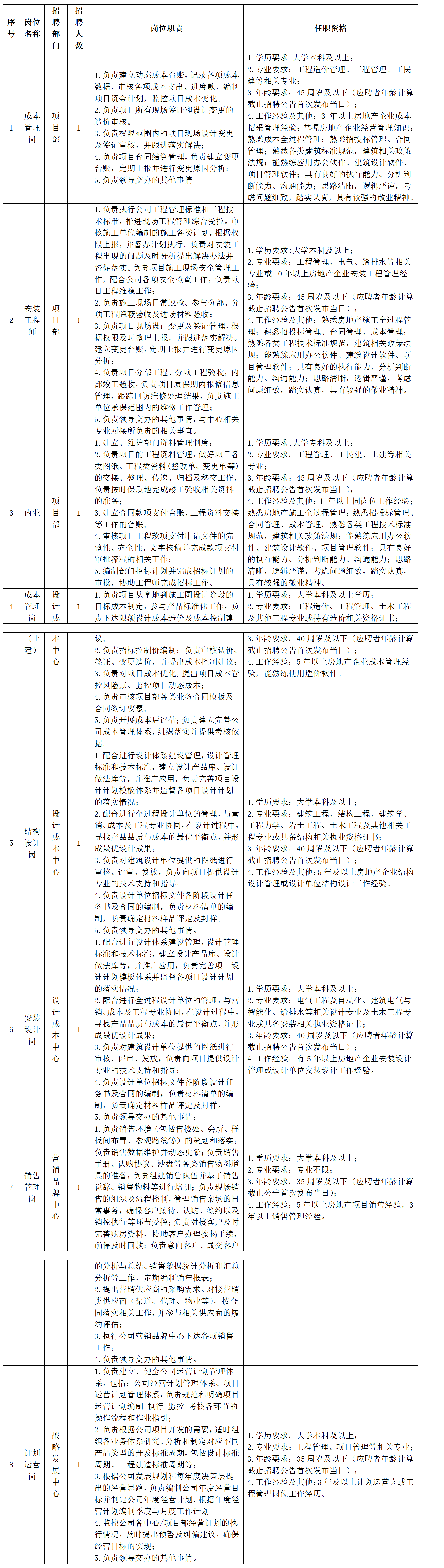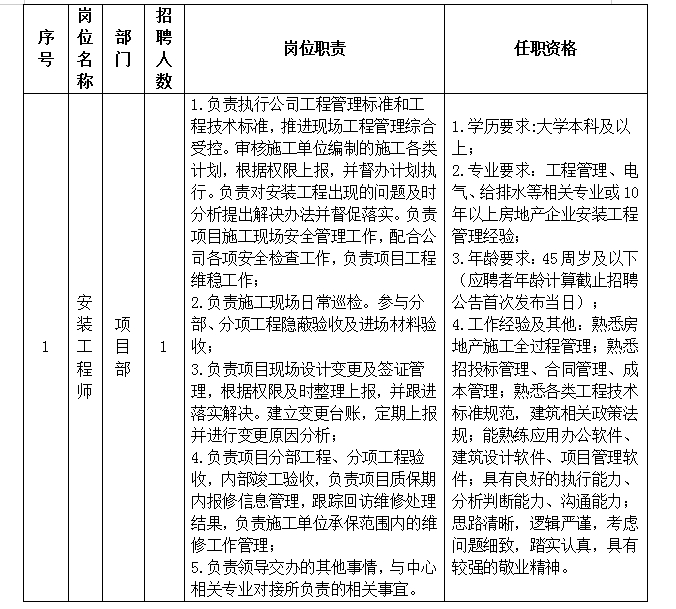 (1)年龄30岁-40岁,大学本科及以上相关专业学历,有园林景观五年以上工作经验,有工程师及以上职称。具有全国注册监理工程师(机电安装)者优先。条件优秀者可适当放宽。