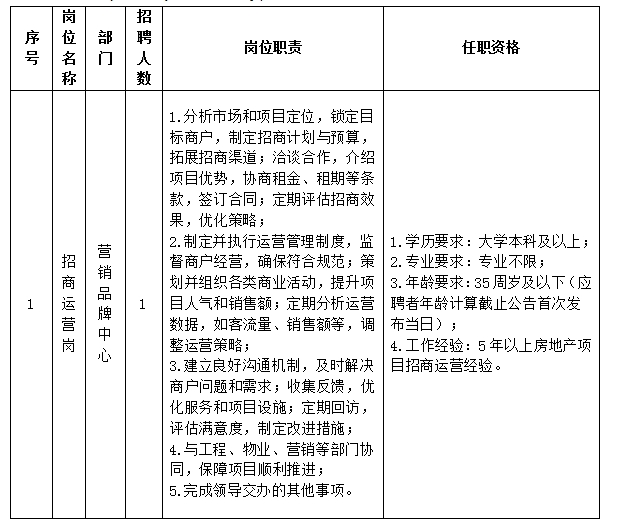(三)招聘人数:运营管理岗1人、投资管理岗1人。