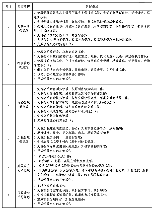 经公司研究决定,拟按照公开、公平、公正、择优原则,以项目聘用方式,面向社会招聘10名现场管理人员及5名土建工程造价管理人员。其职能职责及任职条件如下: